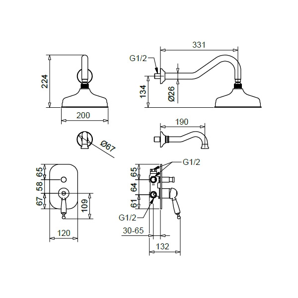 Bugnatese Oxford 6369BR Fal alatti esőztető kádkifolyóval BR / BRONZBugnatese