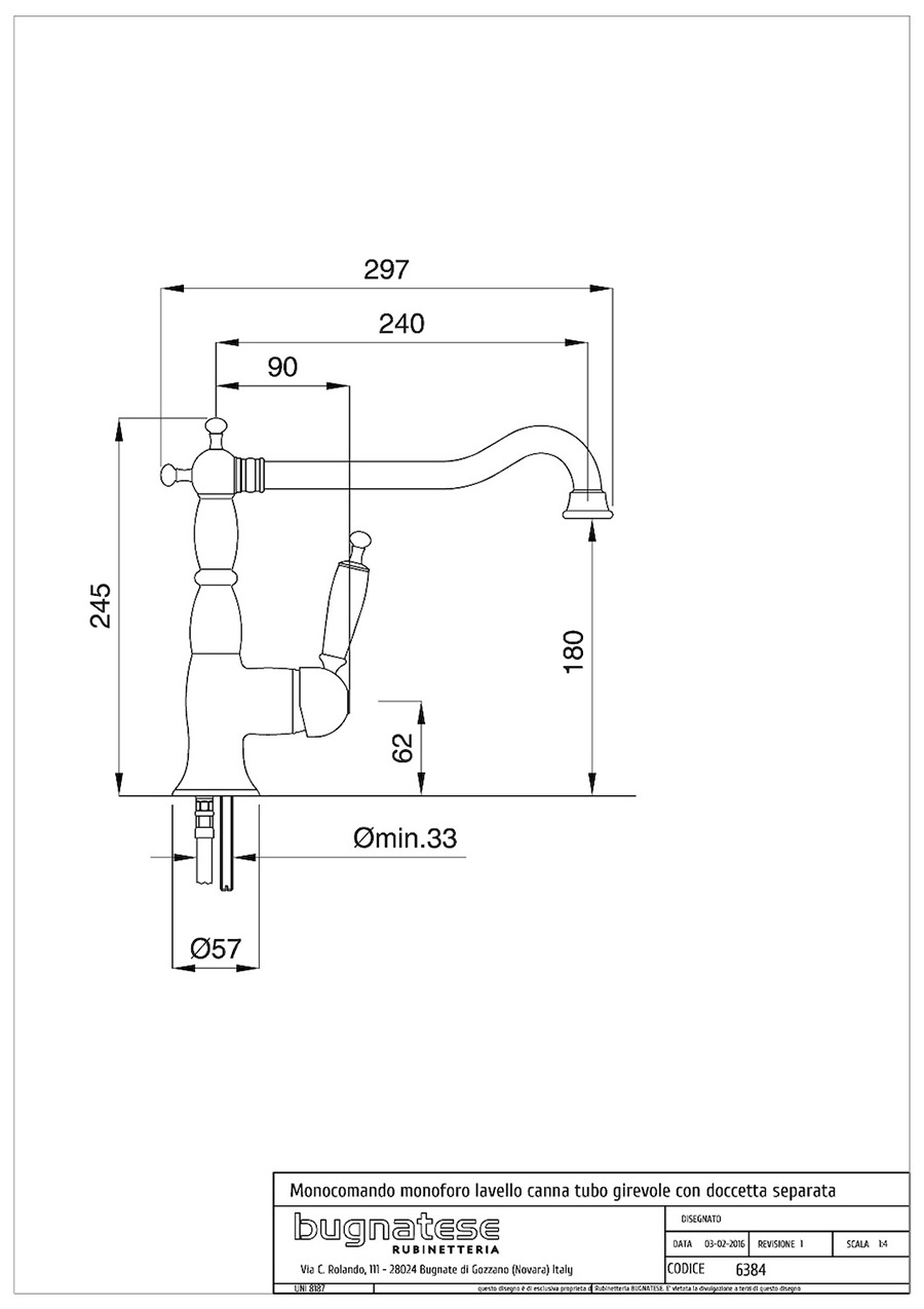 BUGNATESE Oxford álló mosogatócsaptelep 6382CRBugnatese