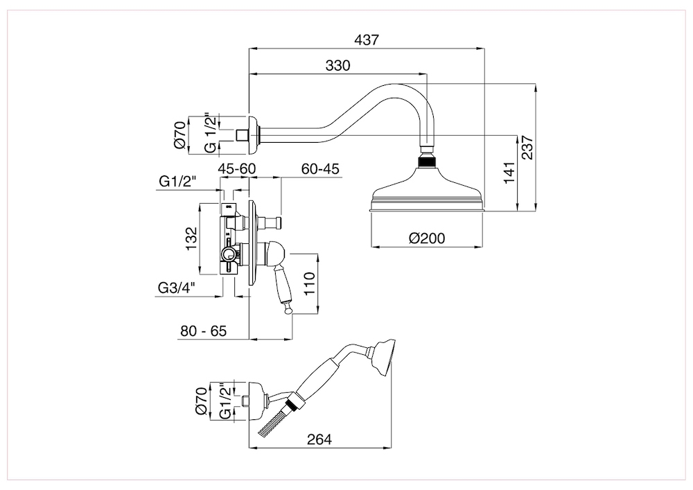Bugnatese Denver Fal alatti esőztető kézizuhannyal, rame szín 6474RA
