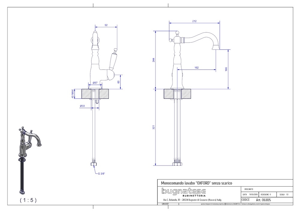 Bugnatese Oxford mosdócsaptelep leeresztő nélkül, arany 6313SDOBugnatese