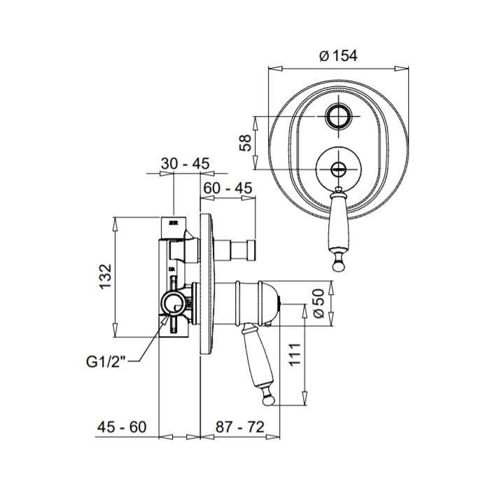 Bugnatese Oxford Termostatico 6378NS Termosztátos fal alatti váltós zuhanycsaptelep NS / NIKKELBugnatese