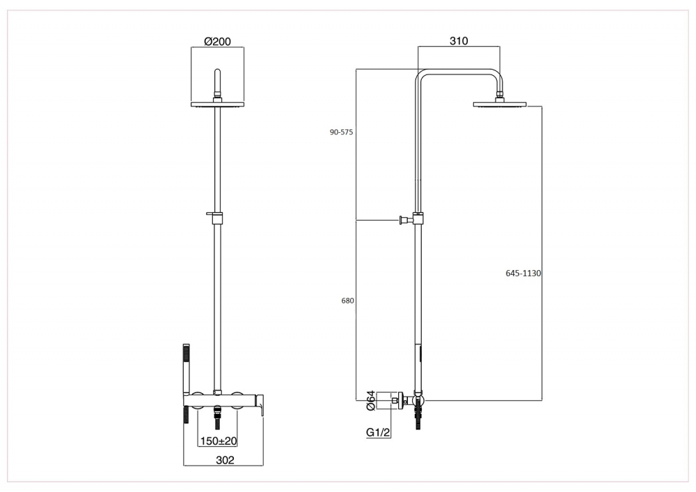 Bugnatese SIMPLE Esőztető rendszer fej- és kézizuhannyal, króm 6642CCRBugnatese