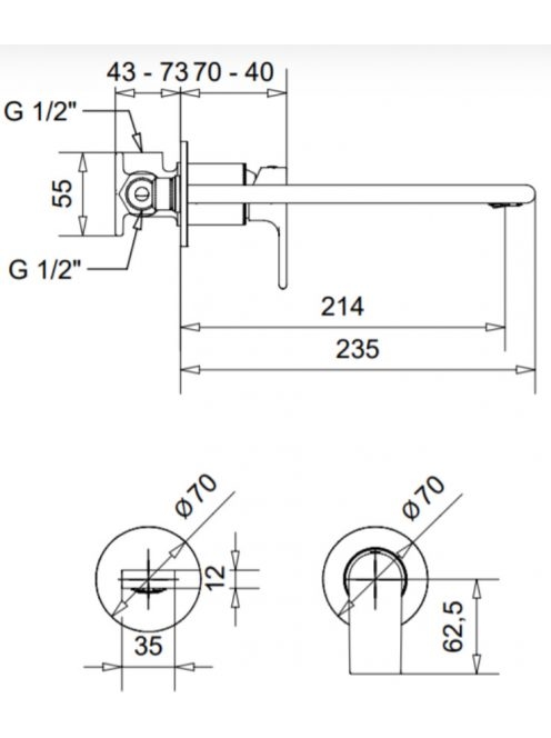 Kifolyó cső hossza: 23,5 cm, kifolyó közepe 21,4 cm