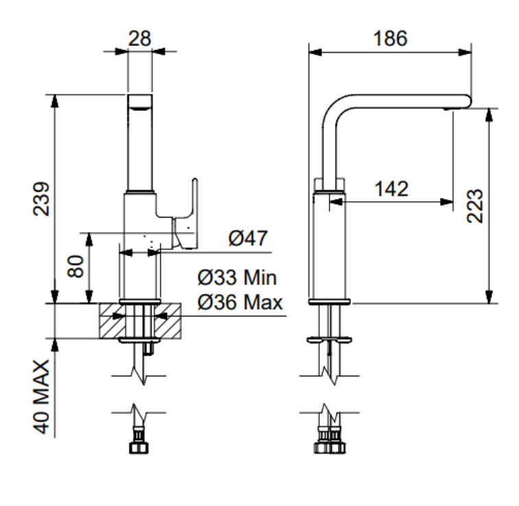 Bugnatese SIMPLE Tört kifolyós mosdócsaptelep leeresztő nélkül grafit színben 6618SGF