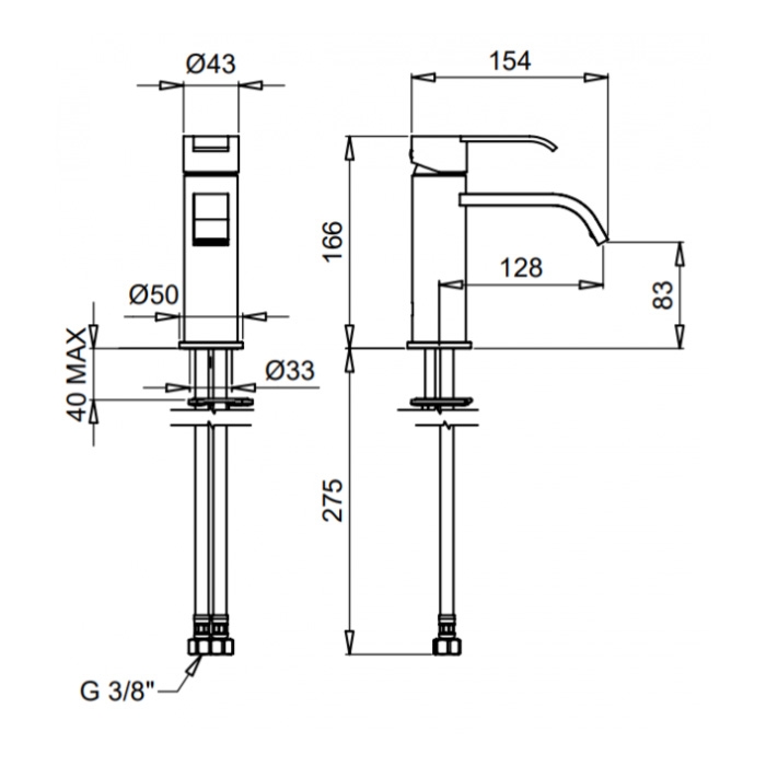 Bugnatese Tess álló mosdócsaptelep klikk-klakk leeresztővel, szálcsiszolt nikkel 9613SCNS