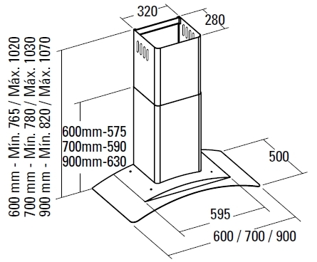 - Külső motoros páraelszívó rendszer vásárlása esetén a páraelszívó ernyő nem tartalmaz motort!
