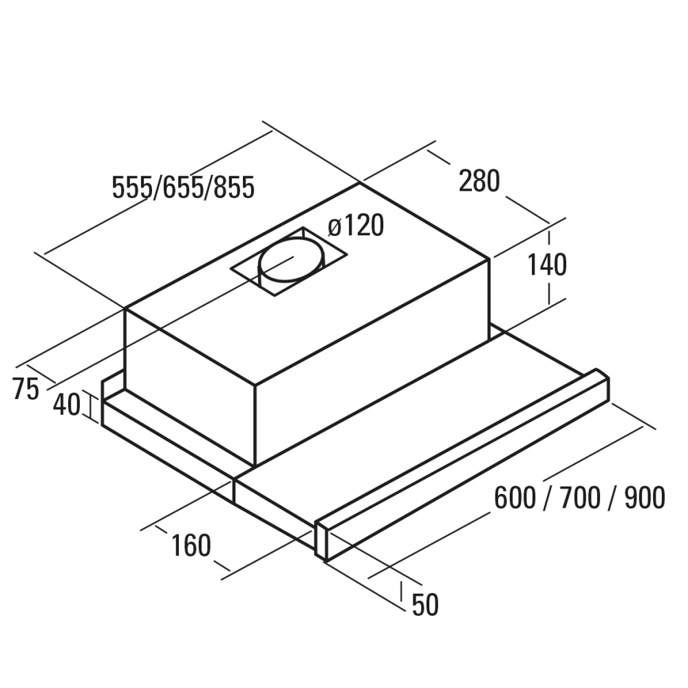 Méretek (szélesség x magasság x mélység): 700mm x 140mm x 280mm
