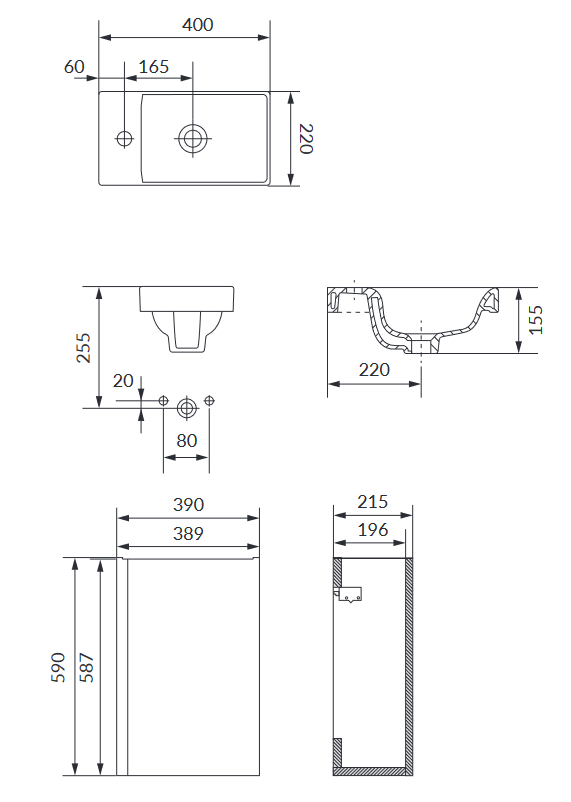Jika Petit szekrény kézmosóval, sötét szürke H45J5111753011