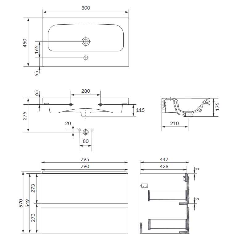 Cersanit Moduo 80 alsószekrény mosdóval, fehér S801-316-DSMCersanit