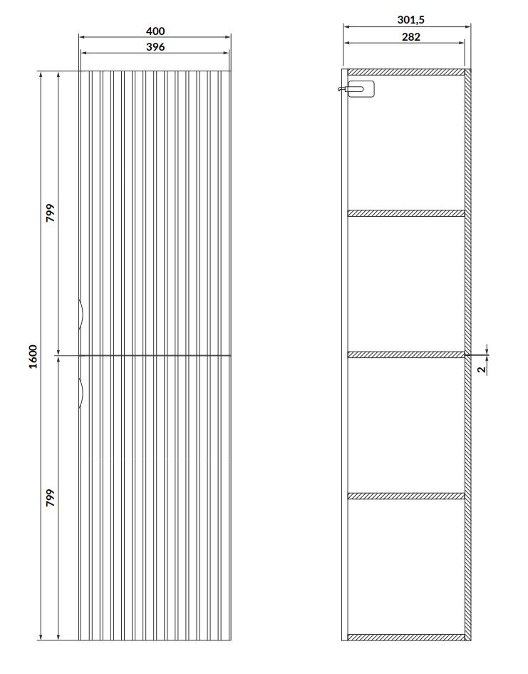 Aqualine VEGA Álló szekrény, szennyestartóval 40x150x31 cm (VG160)