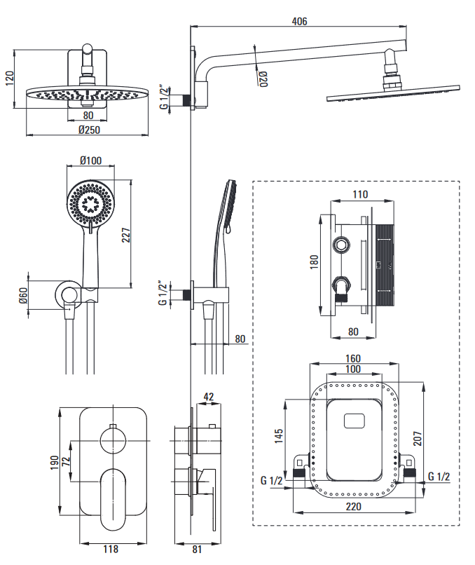 Ferro Algeo Square falsík alatti zuhanyszett (BAQ7P-SET1-S)