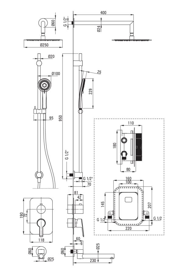 Zuhanyfej átmérő: 400 mm