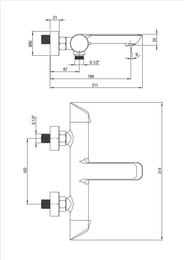 Sapho CORNELI Fali kádtöltő csaptelep (990ESD zuhanyoszlophoz), 2-irányú váltóval, zuhanyszett nélkül, króm (CE10S)