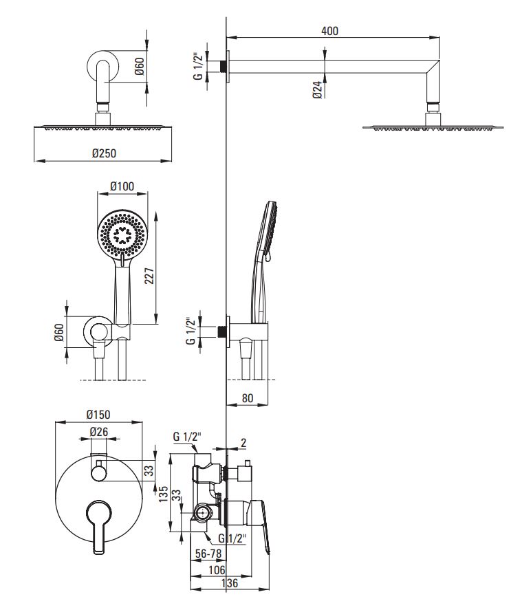 Deante Arnika Titanium falba süllyesztett zuhanyszett csomag NAC D9QP