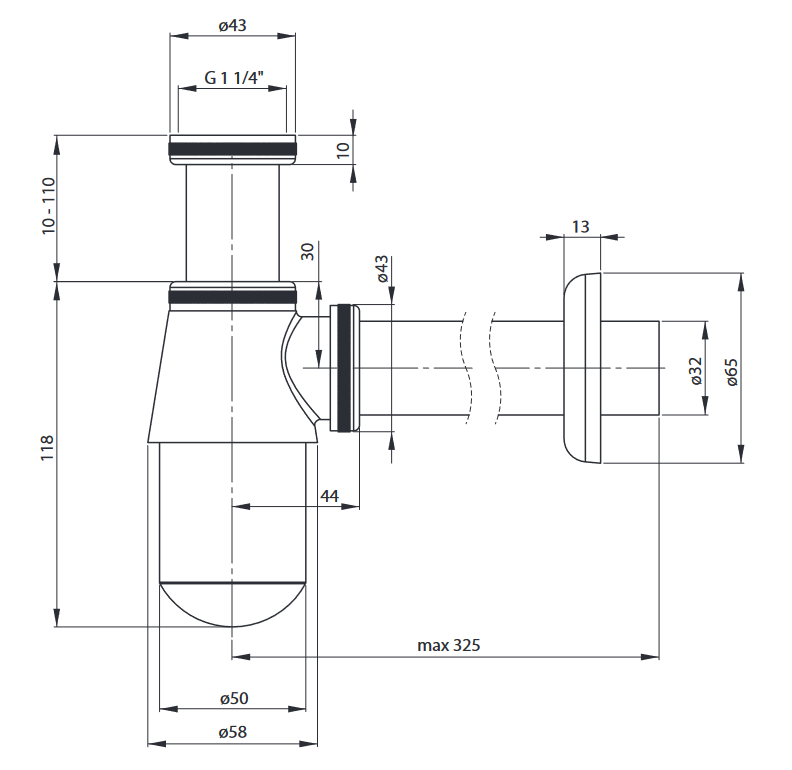 Ferro hengeres búraszifon G5/4x32 mm, króm S282