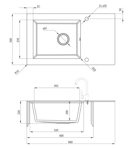 Deante Capella 860x500 gránit/üveg mosogató, metálfekete ZSC GM2C