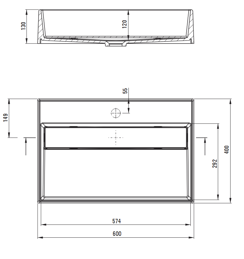 Sapho GARDA pultra szerelhető mosdó, 50x13,5x40cm AR452