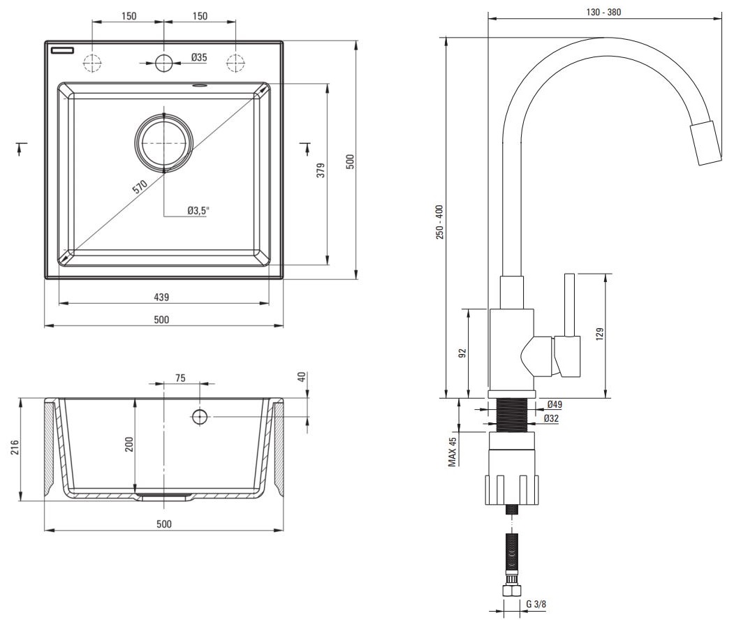 Deante EVORA 1 medencés gránit mosogató csapteleppel, nero ZQJNN103Deante