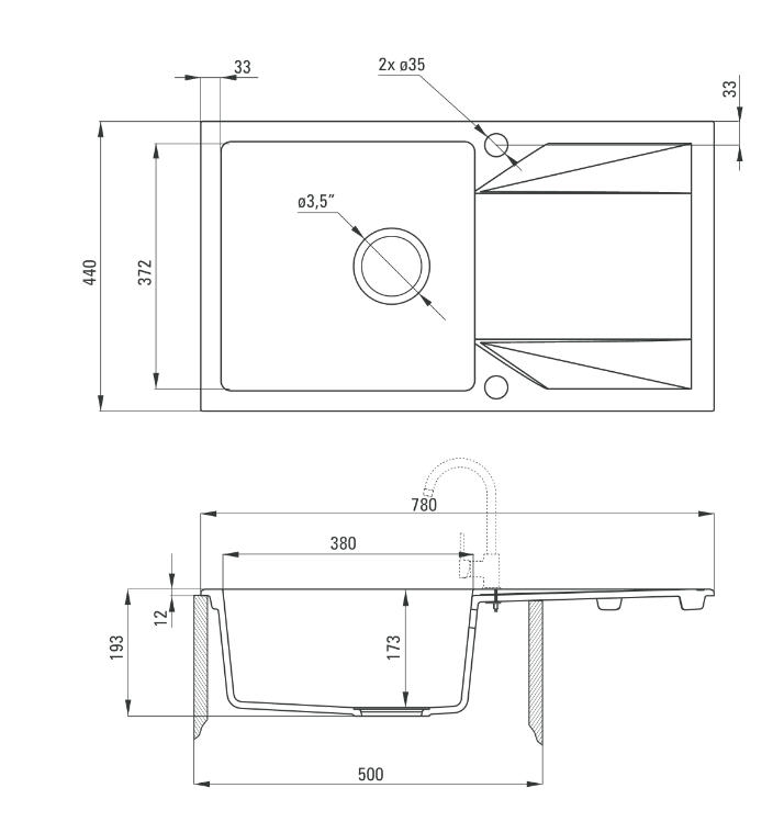 EVIDO Cubo 6S compact gránit mosogató800x500 avena 105722
