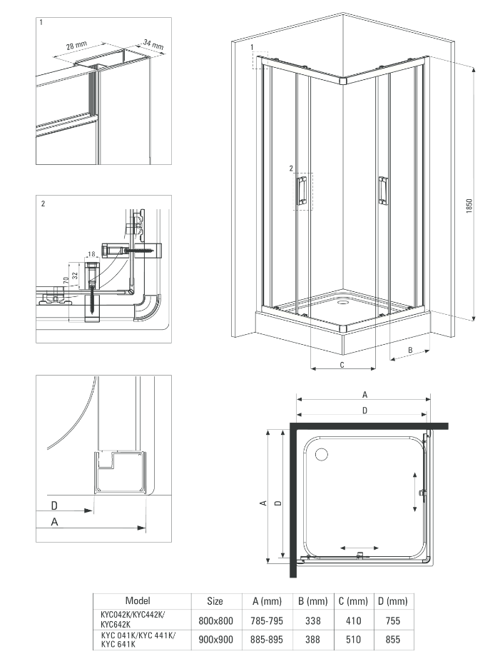 Niwell Carol 90x90 cm-es szögletes zuhanykabin NWZK-CAR9090