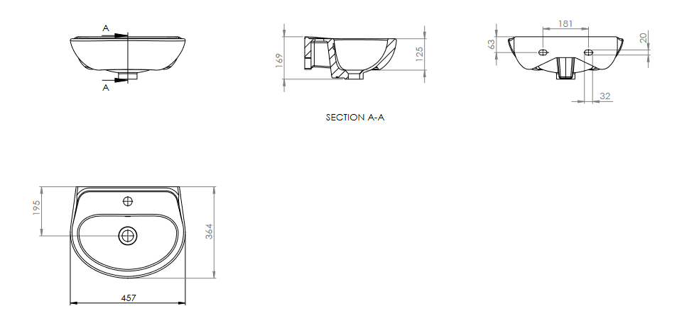 Wellis Santorini 37,5x18,5 cm fali kézmosó, balos WB00317
