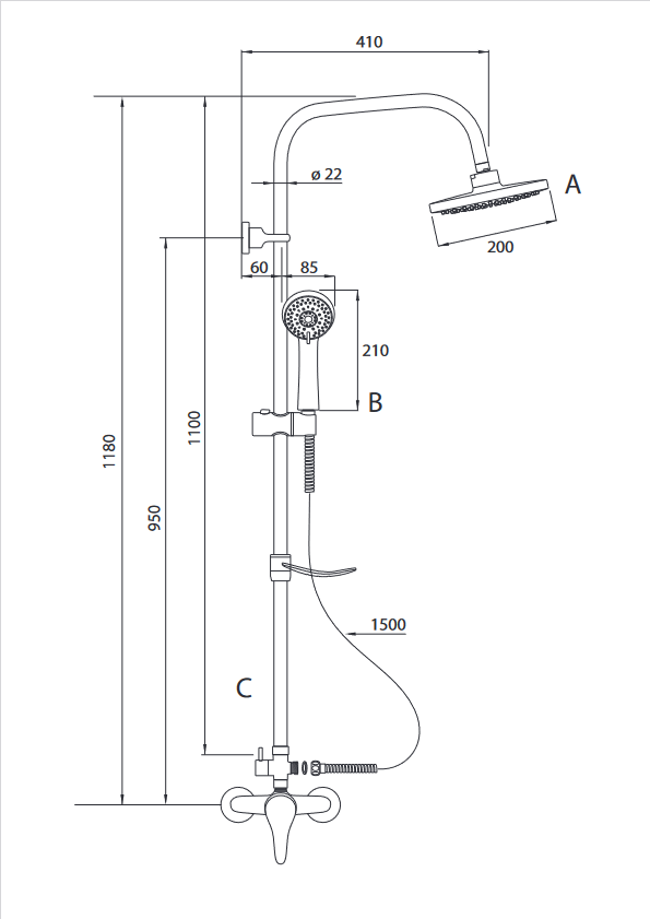 Ferro Ritto egykaros zuhanyrendszer, króm NP84-BTR7U