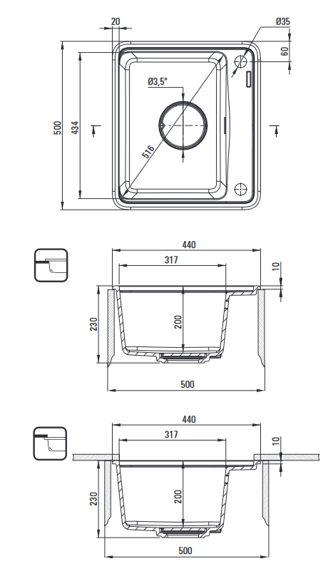 Mély medence - Annak ellenére, hogy a külső méretek megmaradtak, MOMI mosogatóink meglepő kapacitást kínálnak, így a praktikum mestereivé válnak konyhájában. Könnyedén elférnek benne a nagy fazekak vagy az egyenesen a sütőből kivett tepsik, felbecsülhetetlenül értékes helyet kínálva, ami kényelmet és cselekvési szabadságot jelent.