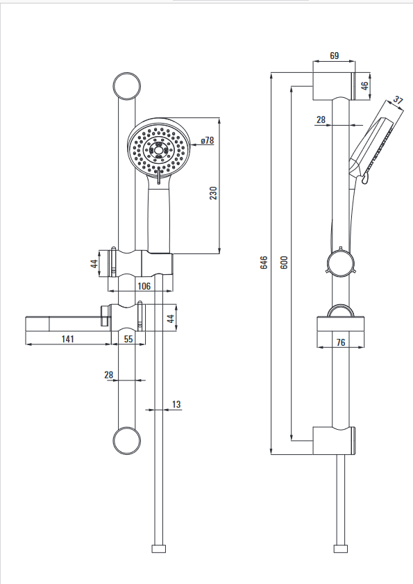 Invena MINI PATRAS kézizuhany, 1 funkciós, matt fekete AU-31-M04-G