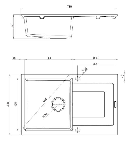 EVIDO Cubo 45S gránit mosogató, 780 x 500 mm, platina 442061