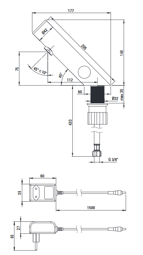 Deante Sense mosdó csaptelep, érintés nélküli, hőmérséklet szabályozás nélkül - 230/6V króm BQR_P28V