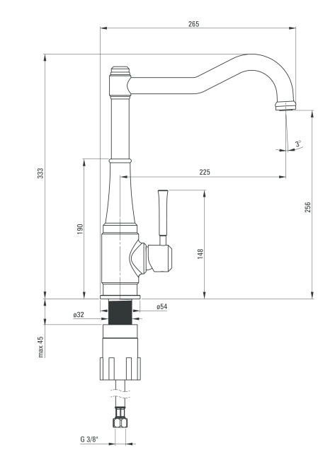 Sapho TRAX álló mosogató csaptelep, króm 619