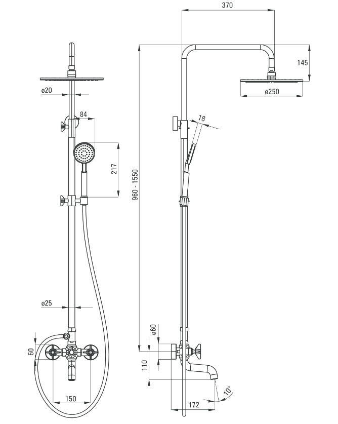 Emporia Rio termosztátos zuhanyrendszer, szálcsiszolt gunmetál 0401201BN