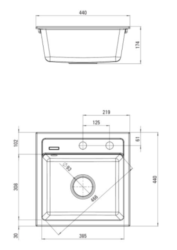 Kuchinox Paulo egymedencés gránit mosogatótálca 49x49x21 cm, fekete SRN_710P