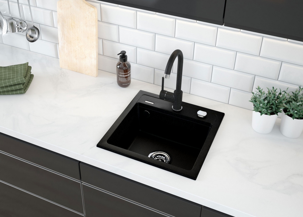 Laveo GRENADA egymedencés csepptálcás mosogató, fekete SRG_711T