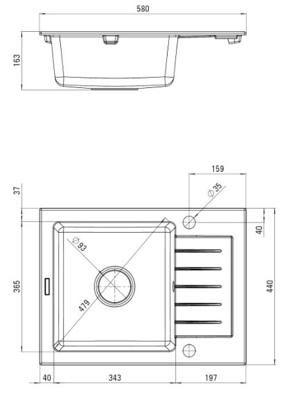 EVIDO Home 45S gránit mosogató antracit EVIDO PINGUIN álló gránit csapteleppel, antracit 105548SET