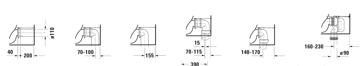 Hátsó kifolyású, lefordító könyök megvásárlásával alsó kifolyás alakítható ki