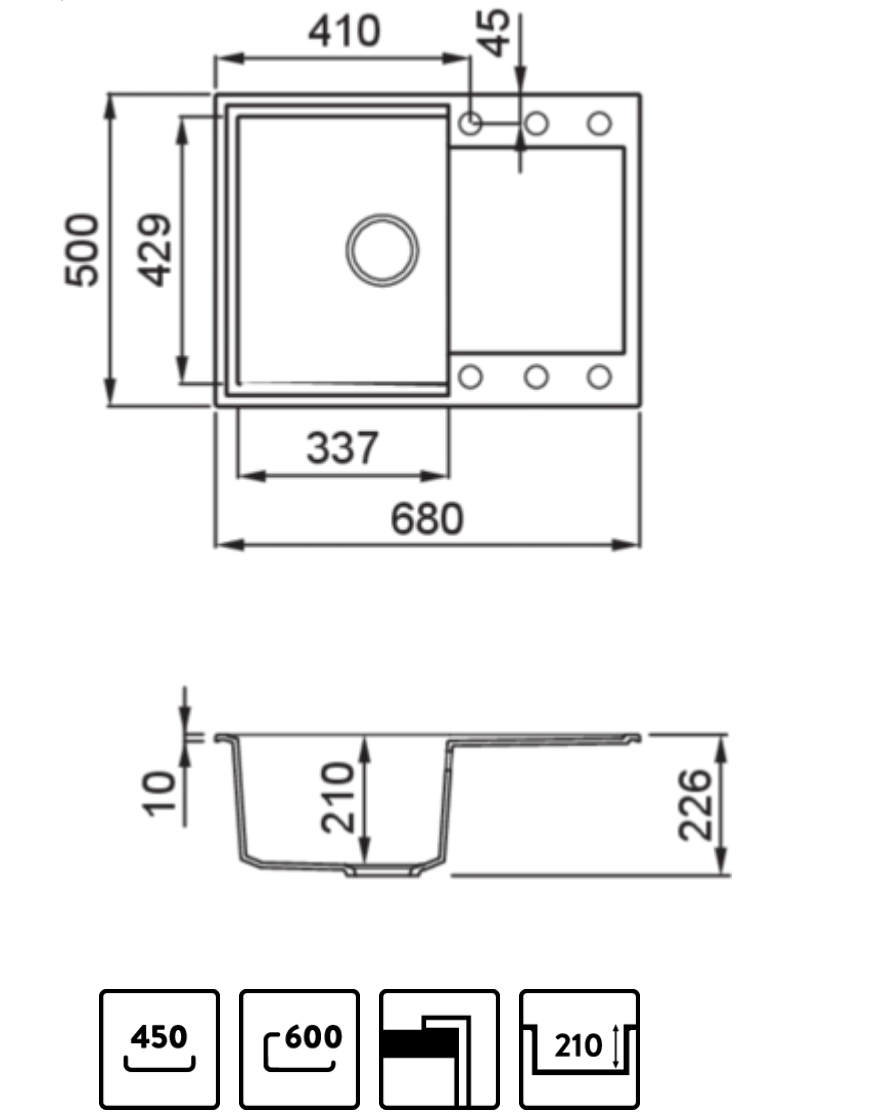 EVIDO Home 45S gránit mosogató antracit EVIDO PINGUIN álló gránit csapteleppel, antracit 105548SET