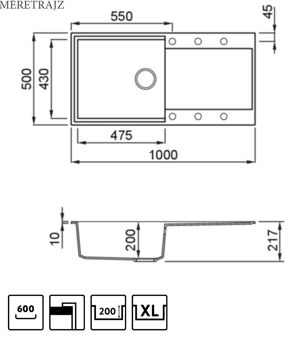 Deante Momi egymedencés gránit mosogató, matt fekete ZKM_N10A