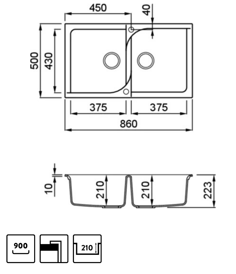 Elleci Ego 450 két medencés gránit mosogató, G62 Bianco Antico LGE45062Elleci Ego 450 két medencés gránit mosogató, G62 Bianco Antico LGE45062