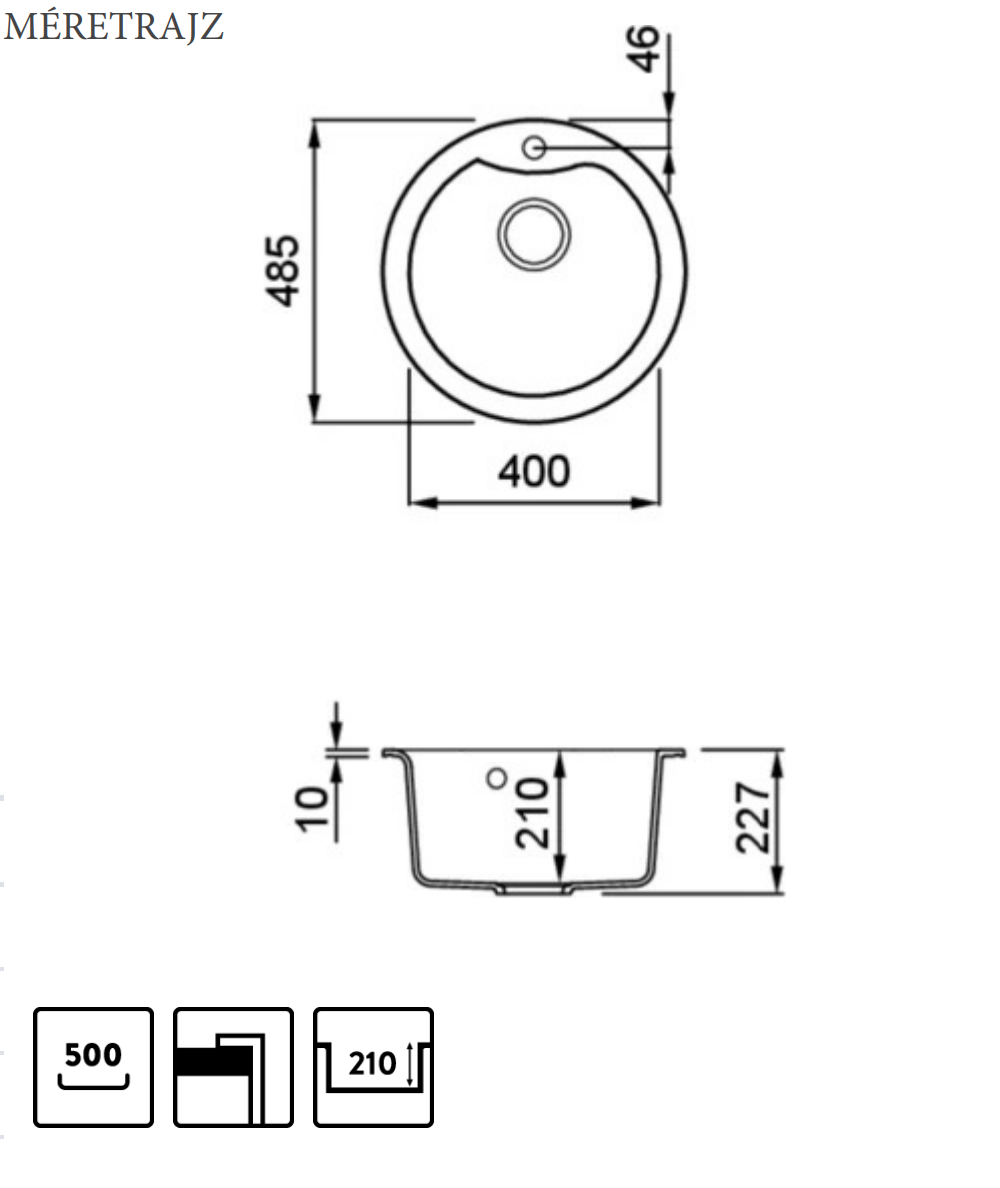 Elleci Ego ROUND kerek medencés gránit mosogató, M70 Ghisa LMEROU70