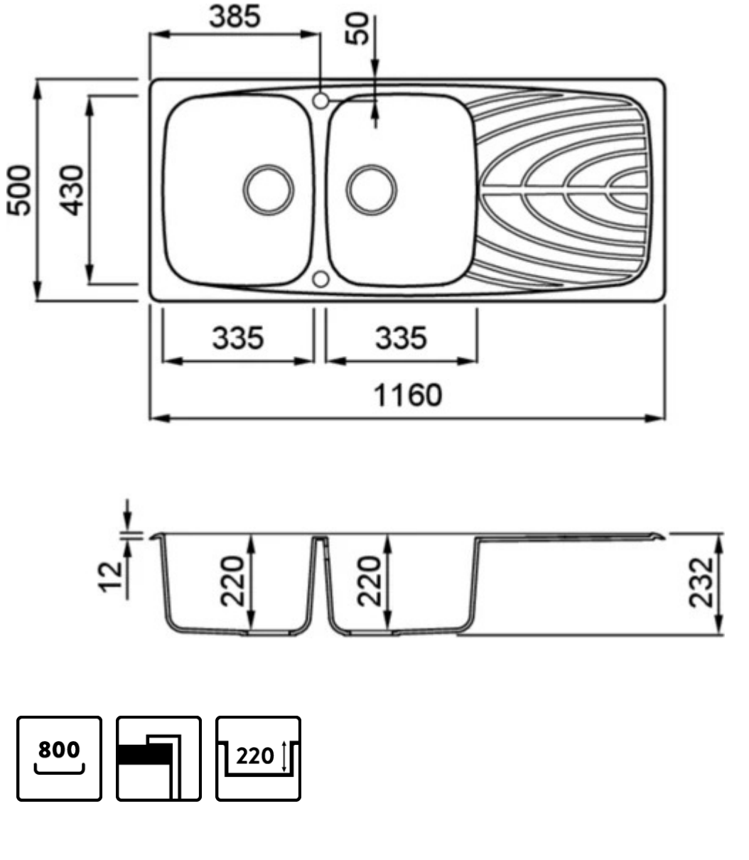 EVIDO Cubo XL 6S gránit mosogató, 1000 x 500 mm, avena 105726