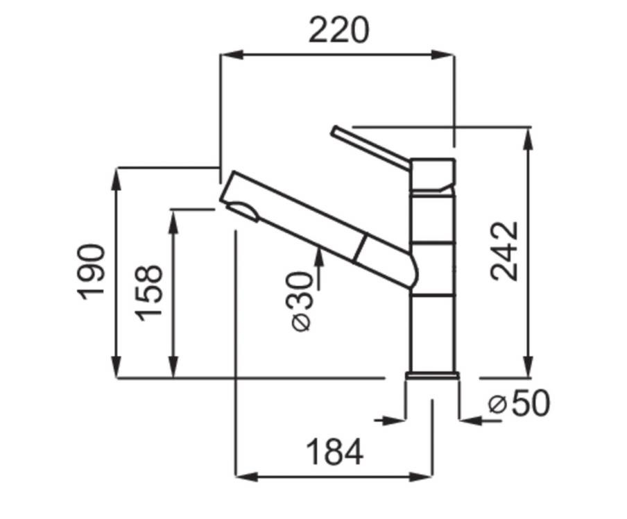 Egykaros csaptelep forgatható kifolyócsővel, kerámiabetéttel és kihúzható zuhanyfejjel.