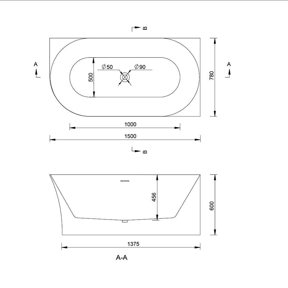 A kád szerkezetét egy masszív, állítható lábakkal ellátott váz támasztja alá, ami biztonságot és terhelésállóságot biztosít. Az integrált túlfolyó és a fehér, klikk-klakk lefolyó kiemeli a termék funkcionalitását és esztétikai megjelenését.