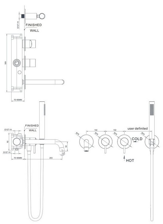 Emporia Rio süllyesztett kádtöltő csaptelep, falsík mögötti rendszerrel kézi zuhannyal, szálcsiszolt nikkel 01032N