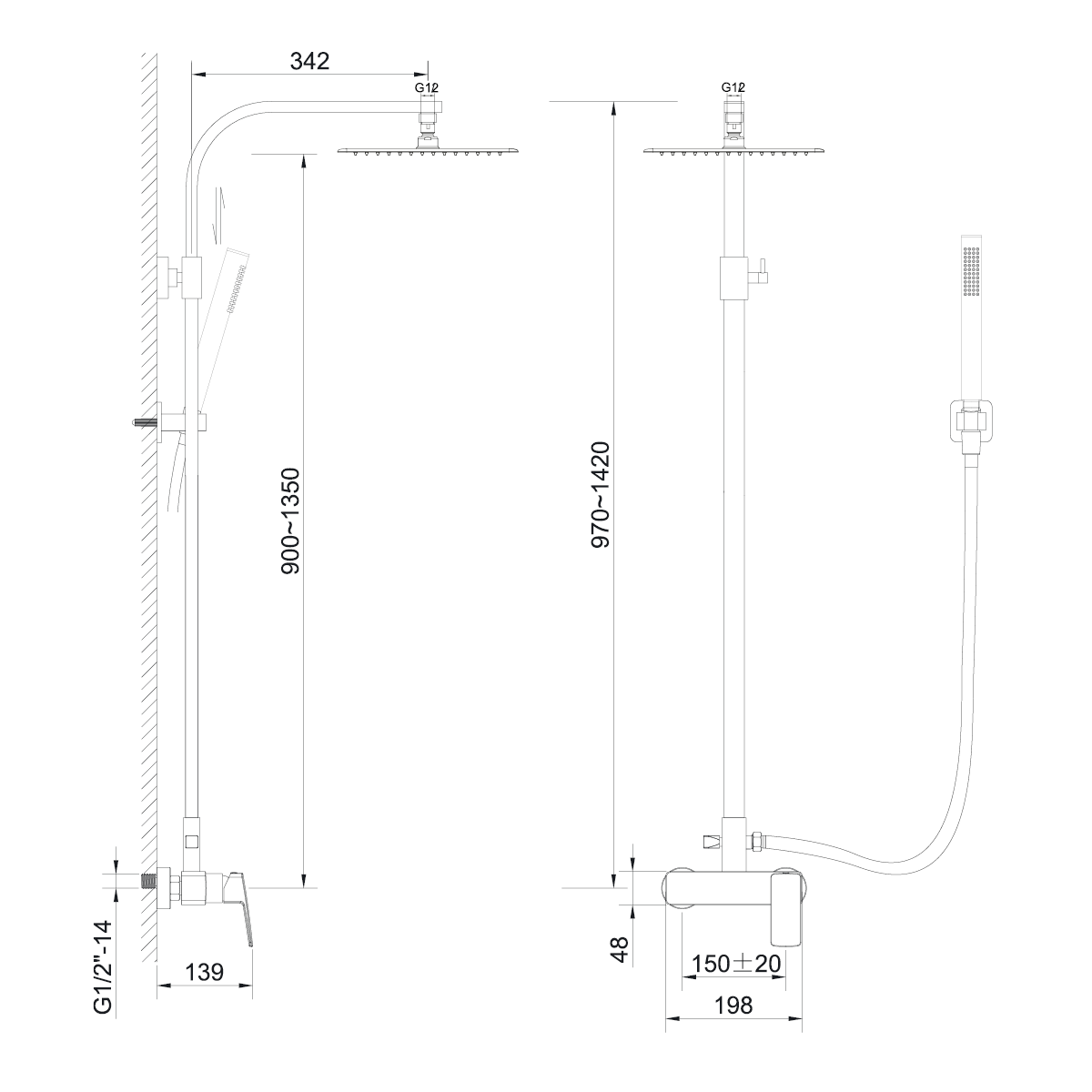 Emporia Teo zuhanyrendszer, szálcsiszolt gunmetál 020110BNEmporia