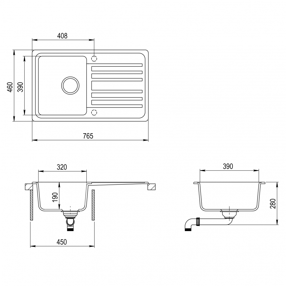 EVIDO Home 45S gránit mosogató, 765 x 460mm, avena 105732