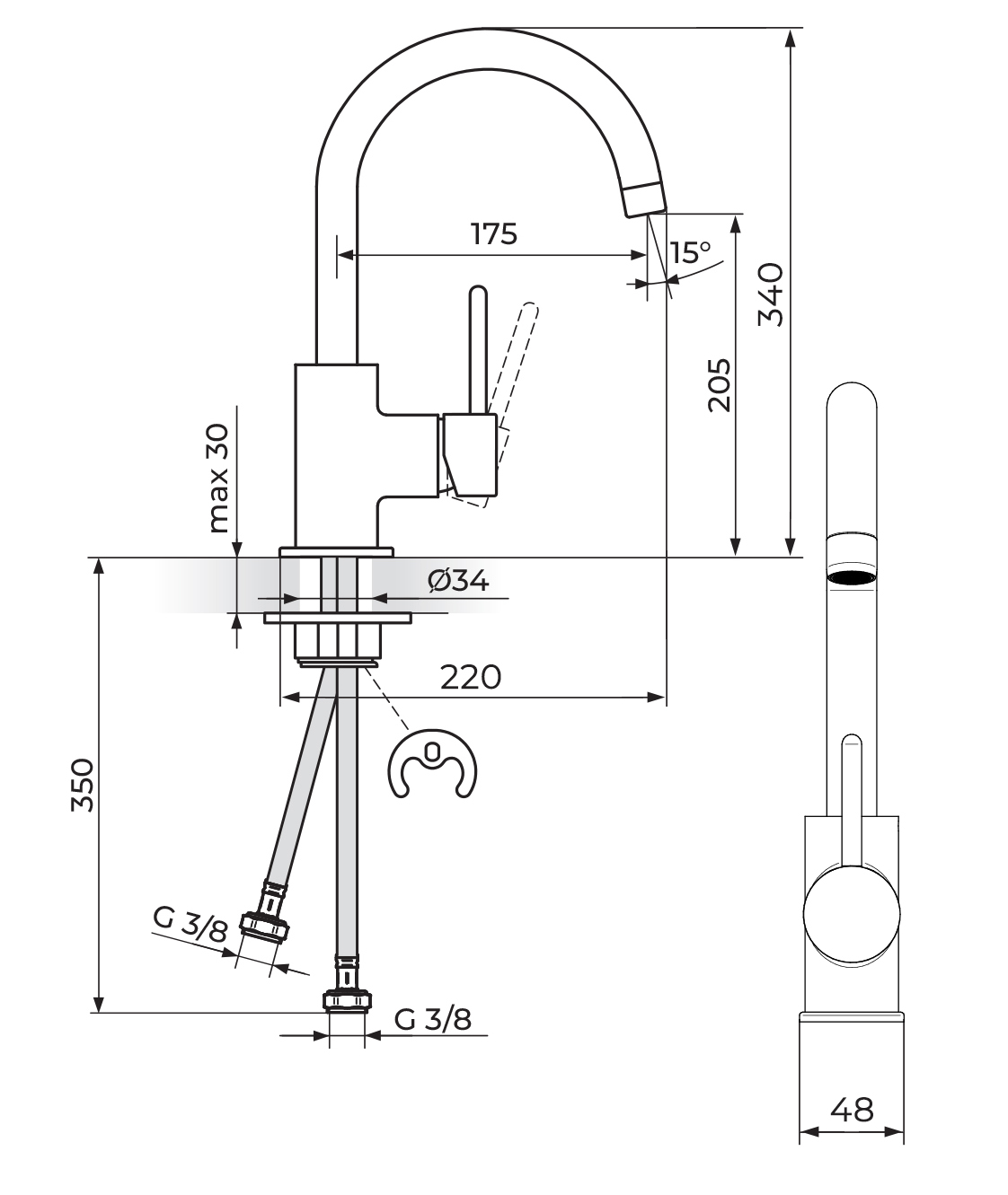EVIDO LANA íves álló gránit csaptelep, fekete 105874Evido