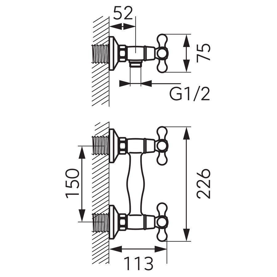 Z-idom G1/2, kiállások közti távolság 150 +/- 20 mm