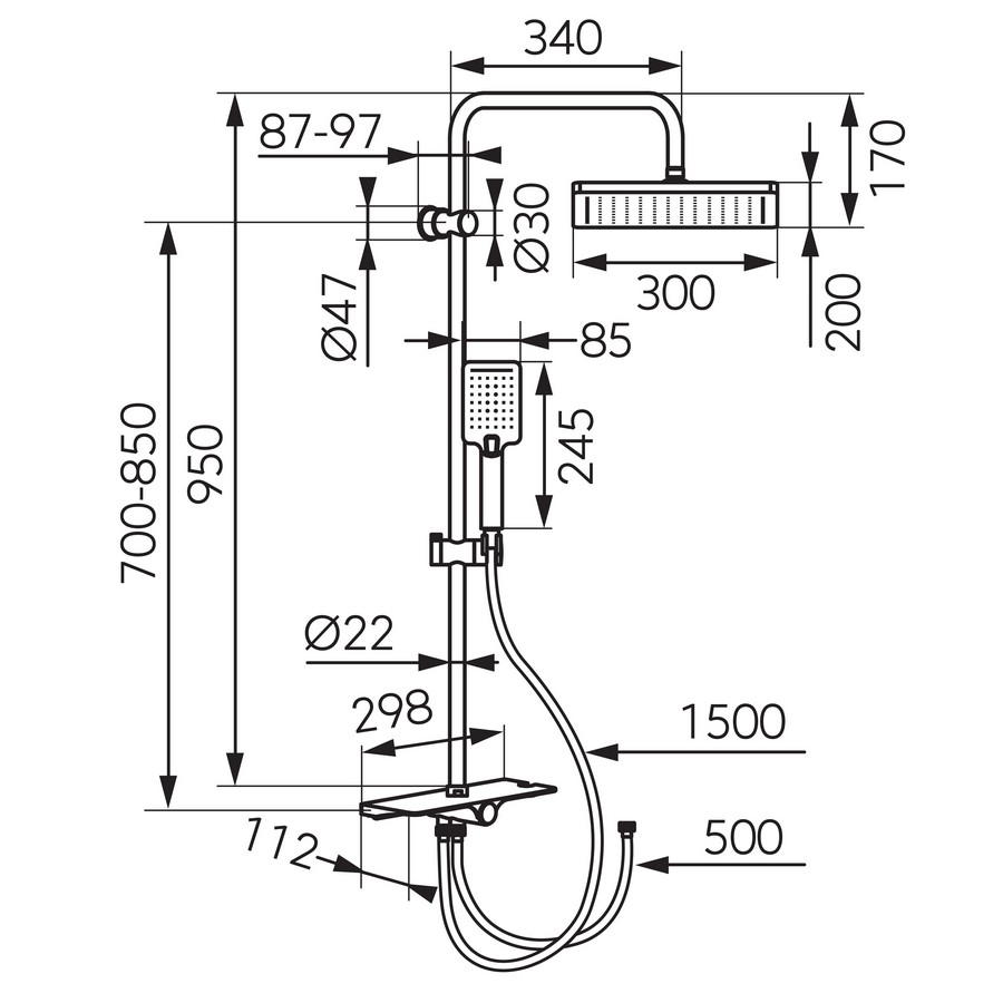 AQUALINE KERA zuhanyoszlop, fejzuhannyal és zuhanyszettel SL430