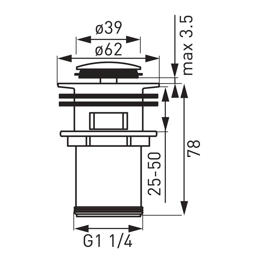 Novaservis Click-clack lefolyószelep túlfolyó nélküli mosdókhoz, króm 36,0